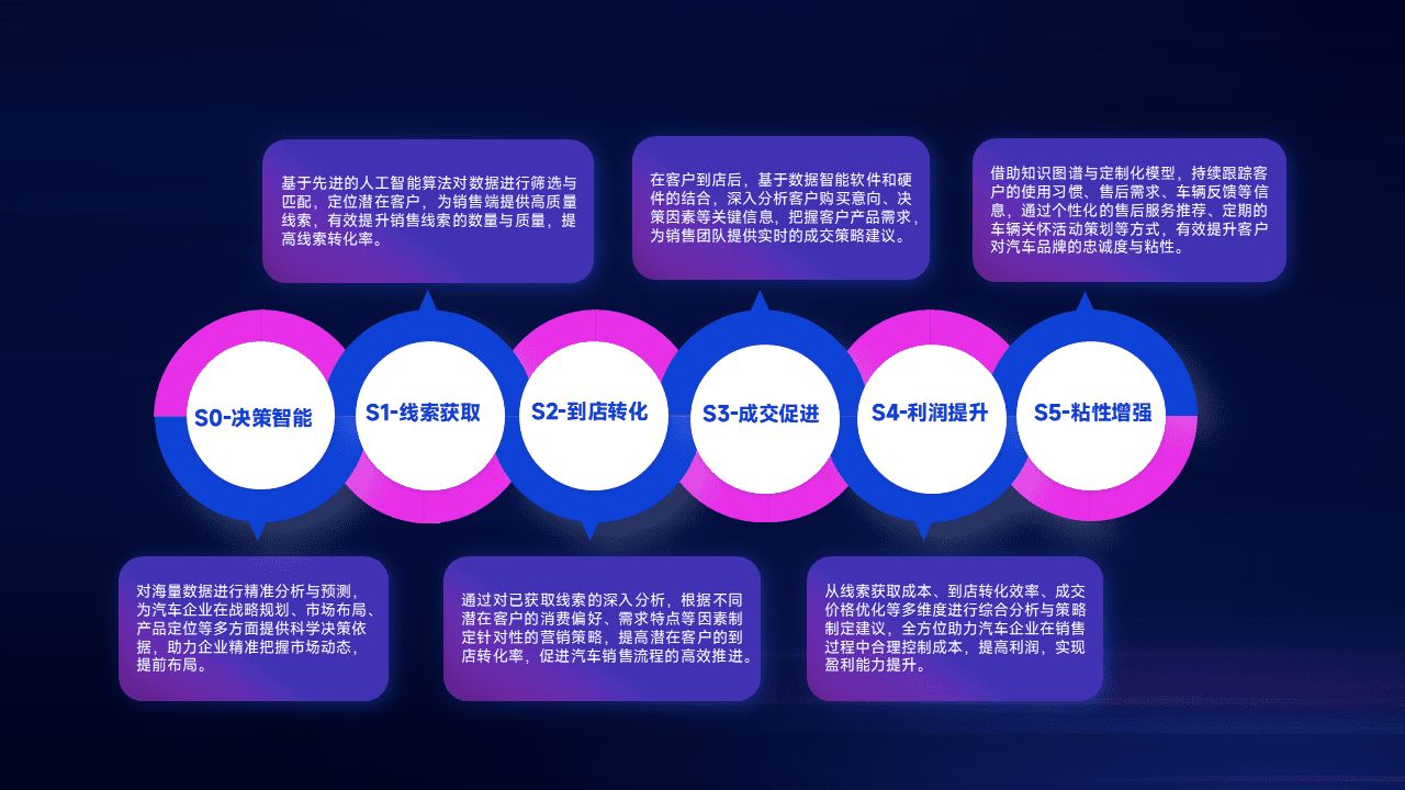 通过拓宽潜在客户来源、、优化线索分配并提高到店转化率,,,,以增强销售效率。。。。同时,,,利用线索数据不断优化分析模型,,,,有效提升转化率,,扩大营销影响力。。。。